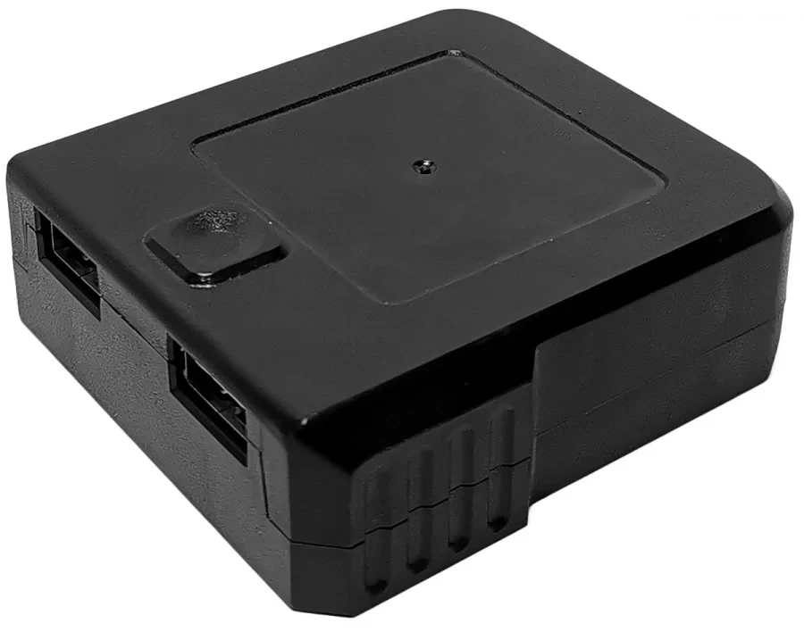 Адаптер подключается к слоту аккумулятора. Адаптер предназначен для работы только с Li-Ion аккумуляторами, напряжением 14,4В и 18В. Адаптер имеет 2 USB порта 5В/2,1А на каждый порт.