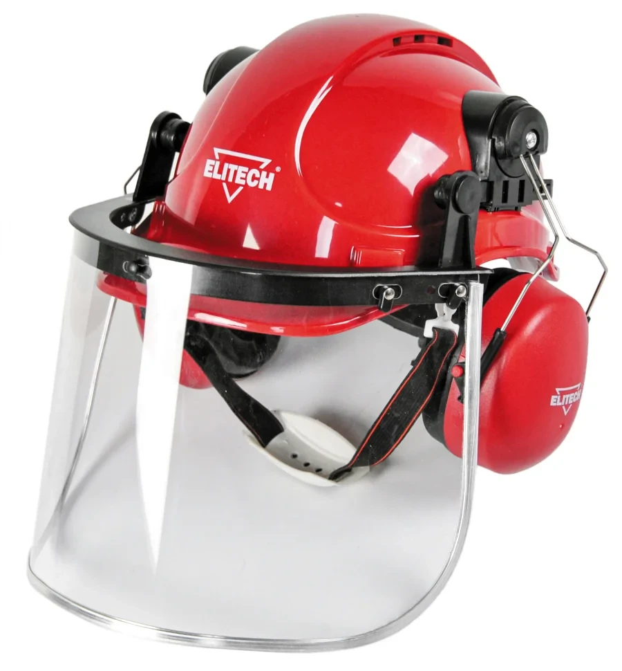 Защитный щиток обеспечивает полную защиту головы оператора, органов зрения и органов слуха от: