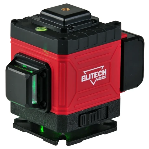 Лазерный нивелир ELITECH ЛН 3/360-ЗЕЛ Промо с автоматическим самовыравниванием проецирует 3 круговых линии с охватом 360 градусов - горизонтальную и две взаимно перпендикулярных вертикальных. Пересечения линий образуют 6 точек - над прибором (зенит), под прибором (надир) и 4 точки в плоскости прибора с углами 90 градусов между собой. Линии можно включить раздельно или одновременно. Есть возможность отключить самовыравнивание для проецирования наклонных линий. Зеленый цвет луча лучше видно в условиях яркой освещенности. Дальность работы до 15 метров. Нивелир имеет отверстие для установки на штатив, с резьбой 1/4 дюйма. В качестве элемента питания используется Li-Ion аккумулятор.