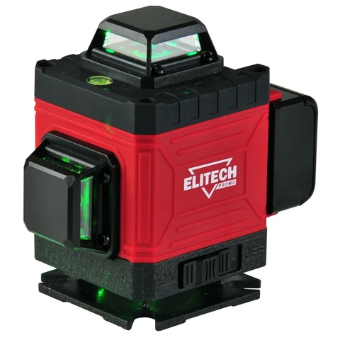 Лазерный нивелир ELITECH ЛН 4/360-ЗЕЛ Промо с автоматическим самовыравниванием проецирует 4 круговых линии с охватом 360 градусов - две горизонтальных и две взаимно перпендикулярных вертикальных. Пересечения линий образуют 10 точек - над прибором (зенит), под прибором (надир) и по 4 точки в плоскости горизонтальных линий с углами 90 градусов между собой. Линии можно включить раздельно или одновременно. Есть возможность отключить самовыравнивание для проецирования наклонных линий. Зеленый цвет луча лучше видно в условиях яркой освещенности, яркость линий можно регулировать. Дальность работы до 25 метров. Нивелир имеет отверстие для установки на штатив, с резьбой 1/4 дюйма. В качестве элемента питания используется Li-Ion аккумулятор.