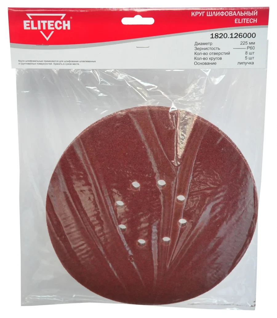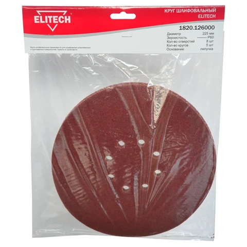 Круг шлифовальный 225 мм, з. Р60, 5 шт., липучка, 8 отверстий