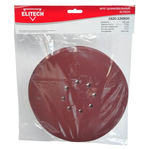 Круг шлифовальный 225 мм, з. Р320, 5 шт., липучка, 8 отверстий