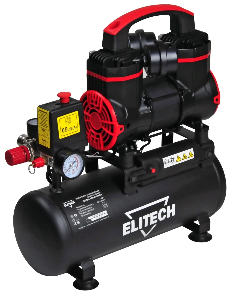 Коаксиальный безмасляный малошумный компрессор с ресивером на 8 литров. Один быстросъемный разъем рапид. Регулировка давления на выходе. Асинхронный двигатель. Два поршневых блока. Два манометра для контроля давления в ресивере и на выходе. Имеет небольшие габариты и малый вес. Отлично подойдет для гаражного использования, частных мастерских и бытового использования.