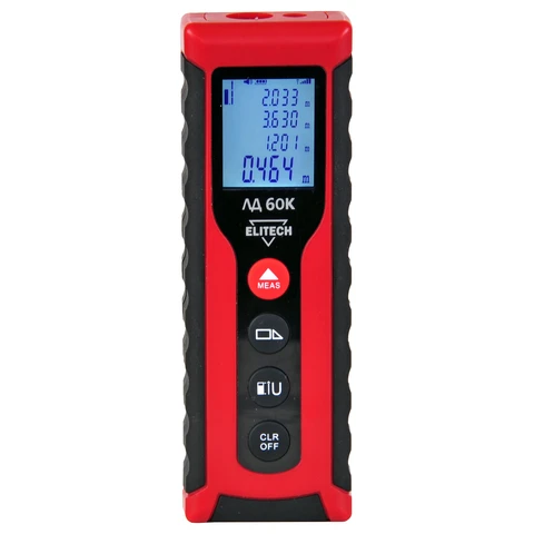 Лазерный дальномер ELITECH ЛД 60К предназначен для быстрого измерения расстояний на дальности до 60 метров. Он точнее обычной рулетки при измерении расстояния более 8 метров.