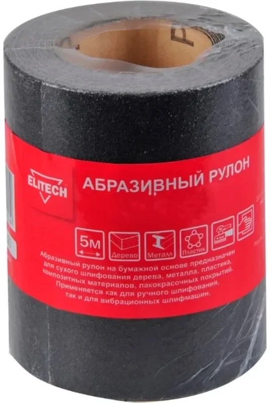 - Абразивный рулон на бумажной основе Elitech 1820.143500, арт. 204099 предназначен для сухого шлифования дерева, металла, пластика, композитных материалов, лакокрасочных покрытий.