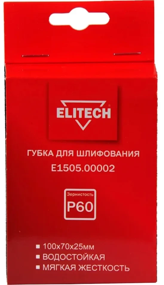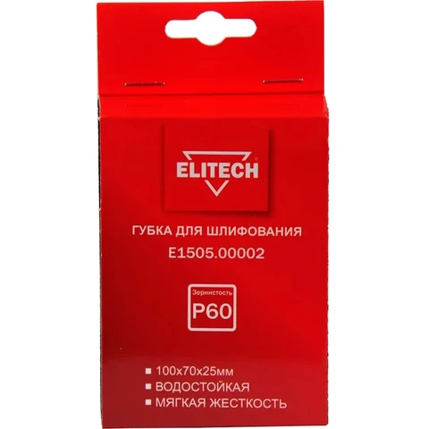 - Губка для шлифования 100х70х25 P60 мягкая Elitech E1505.00002;