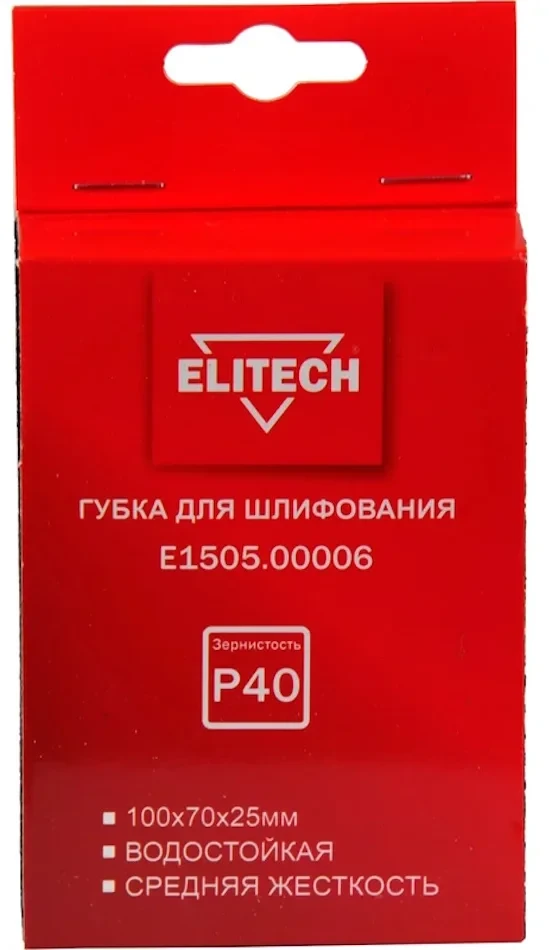 - Губка для шлифования 100х70х25 P40 средняя Elitech E1505.00006;