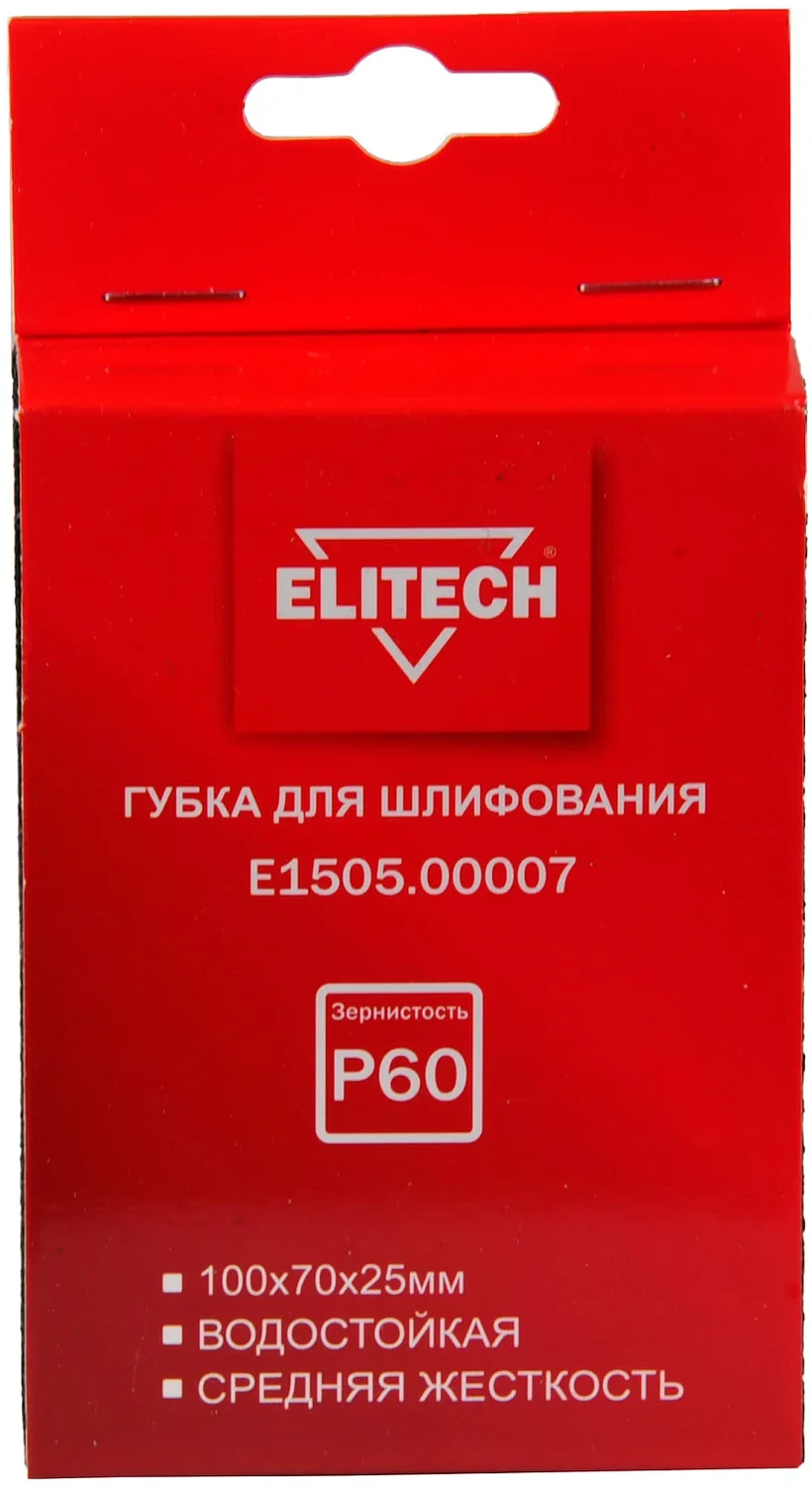 - Губка для шлифования 100х70х25 P60 средняя Elitech E1505.00007;