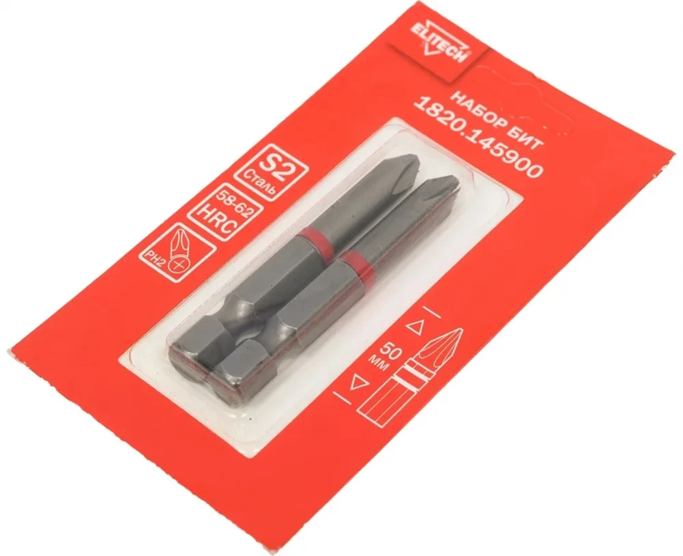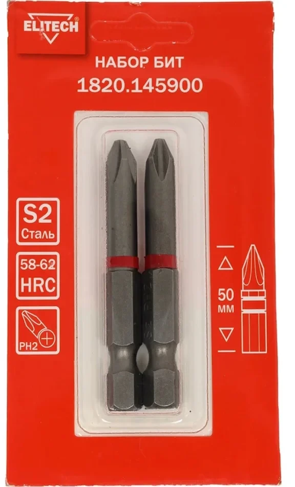 - Биты PH2 50мм., Elitech 1820.145900 - 2 шт.;