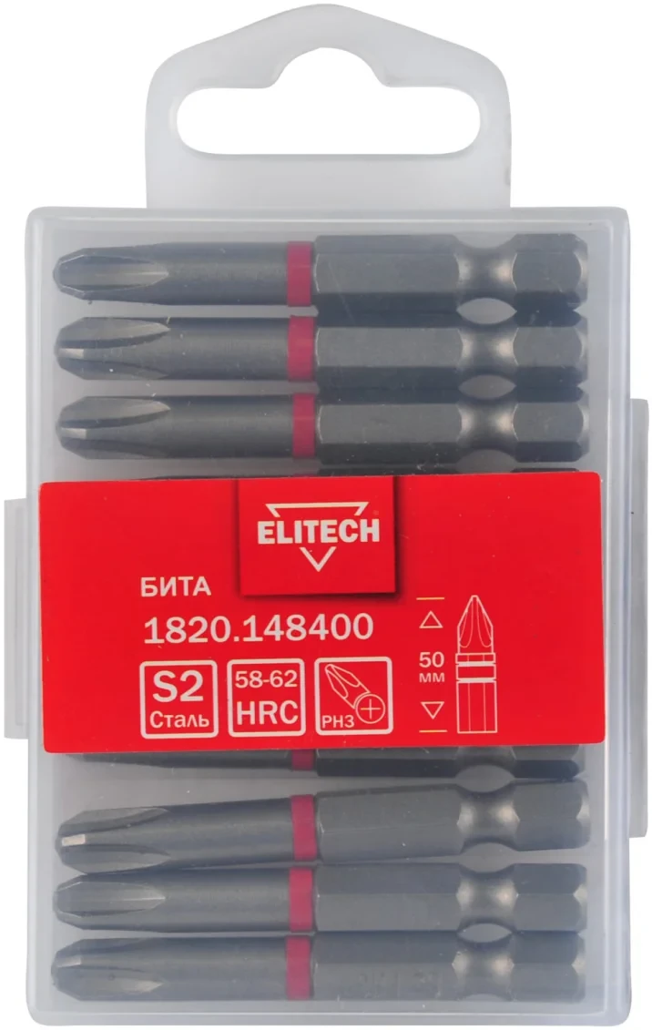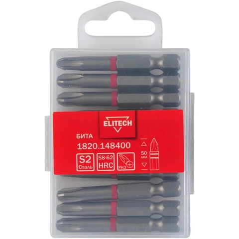 - Бита PH3 50мм 1шт Elitech 1820.148400 - 1 шт.;