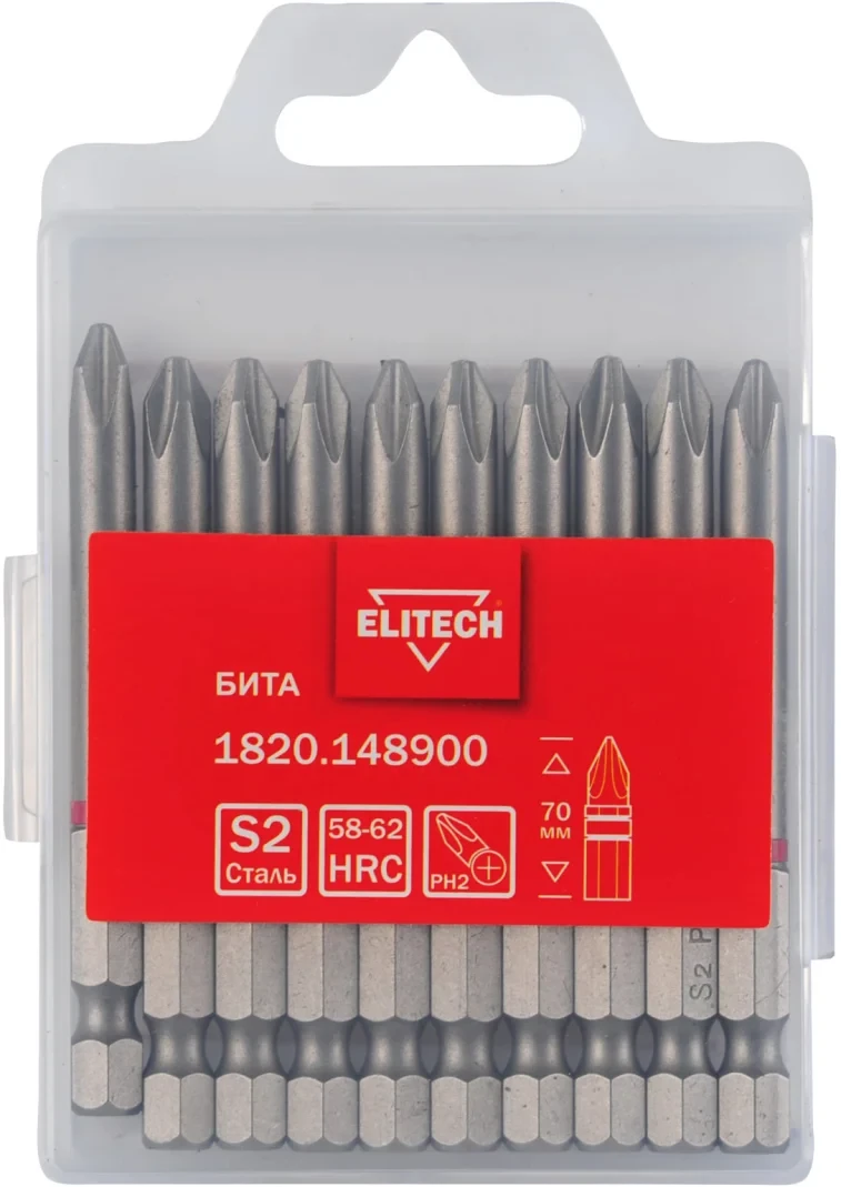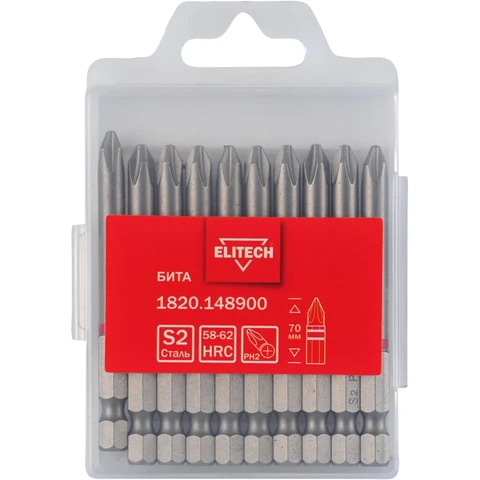 - Бита PH2 70мм 1шт Elitech 1820.148900 - 1 шт.;