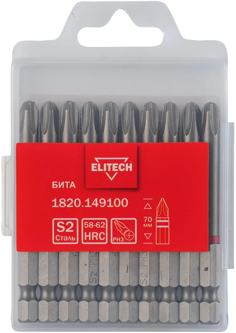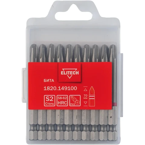 - Бита PH3 70мм 1шт Elitech 1820.149100 - 1 шт.;