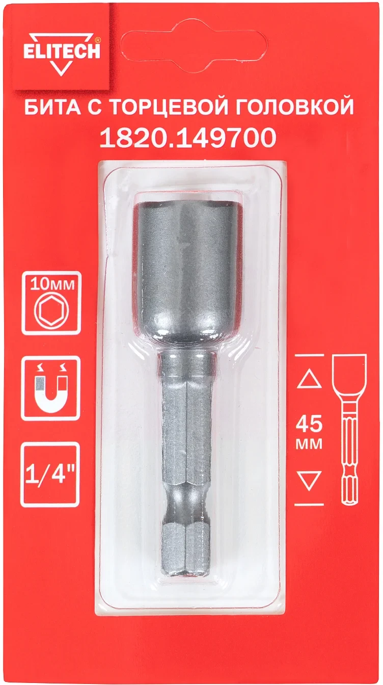 - Бита торцевая головка 10мм 45мм Elitech 1820.149700;