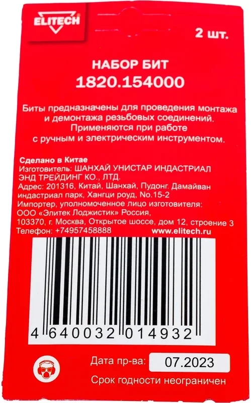 - Биты HEX3, 50мм., Elitech 1820.154000 - 2 шт.;