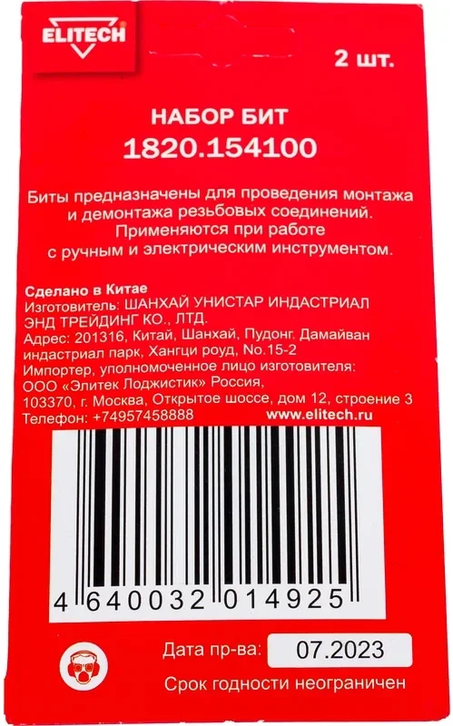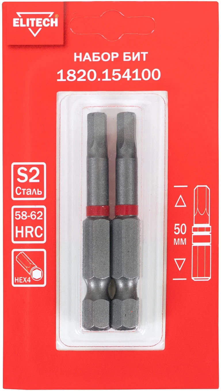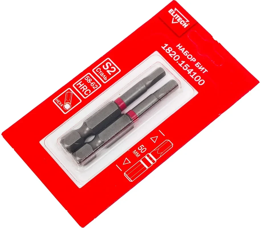 - Биты HEX4 50мм Elitech 1820.154100 - 2 шт.;