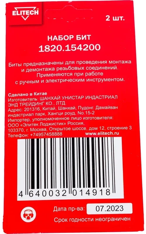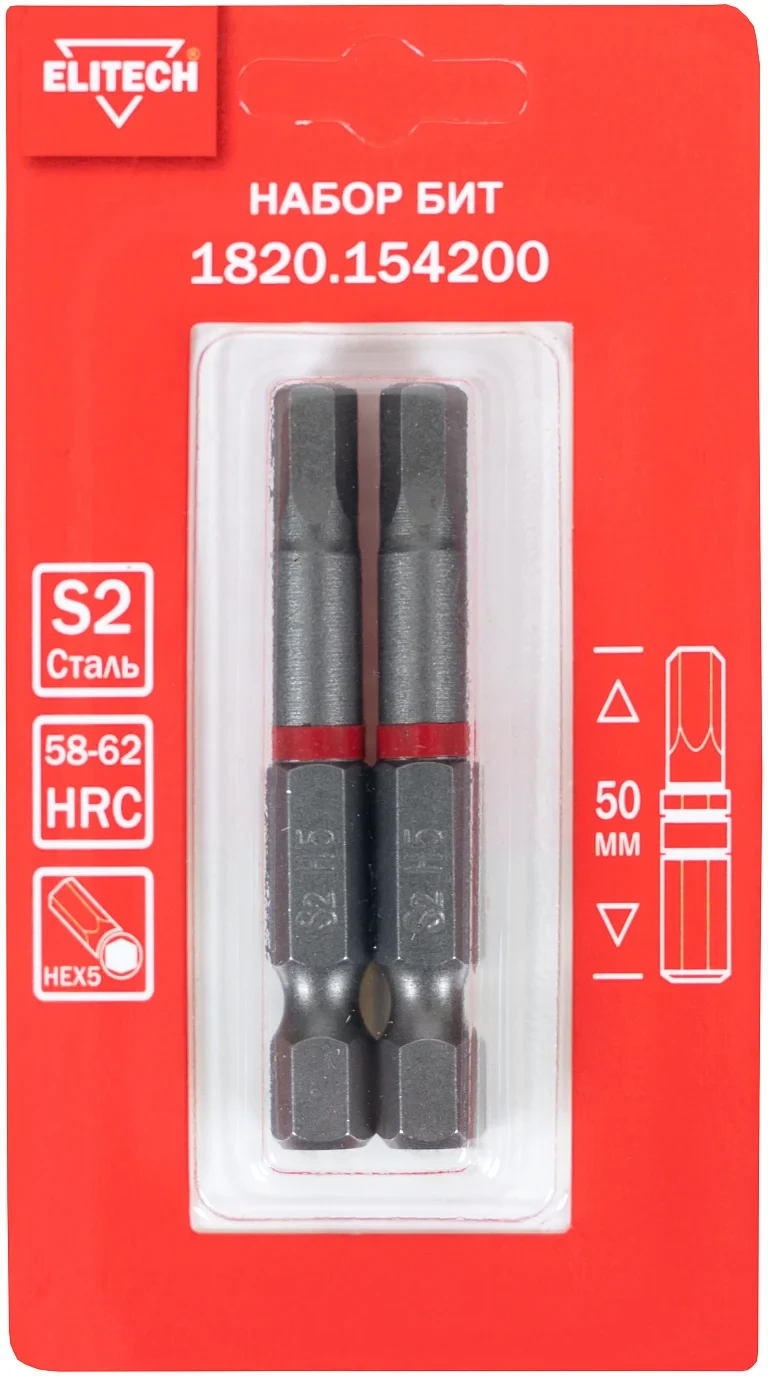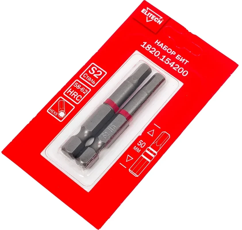 - Биты HEX5, 50мм., Elitech 1820.154200 - 2 шт.;