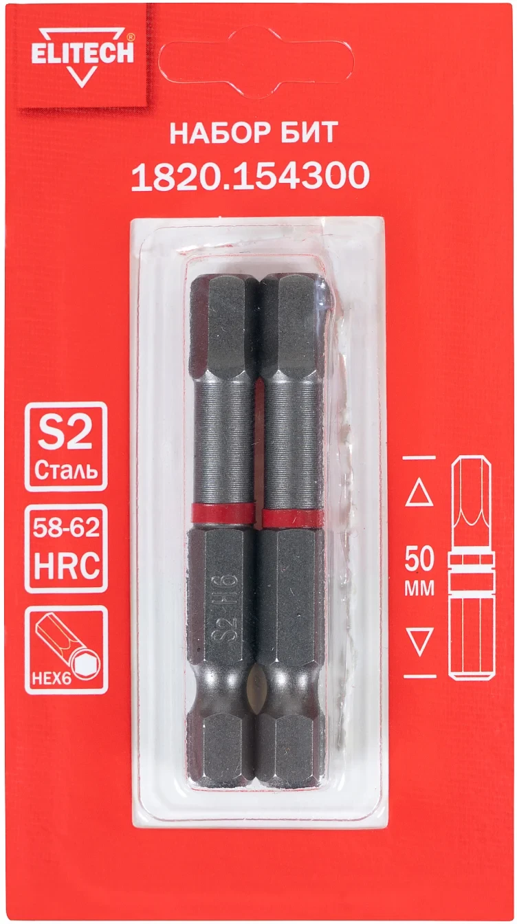 Биты HEX6, 50мм., Elitech 1820.154300, 2шт., 204302
