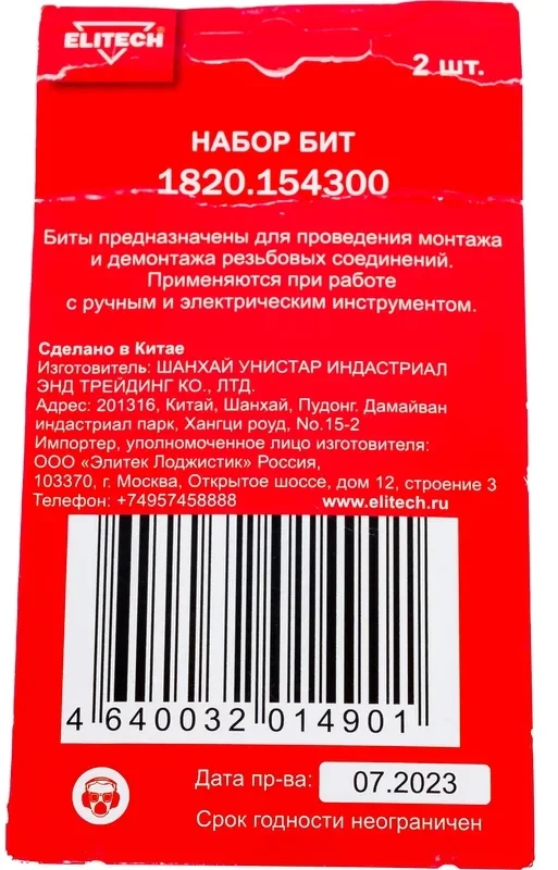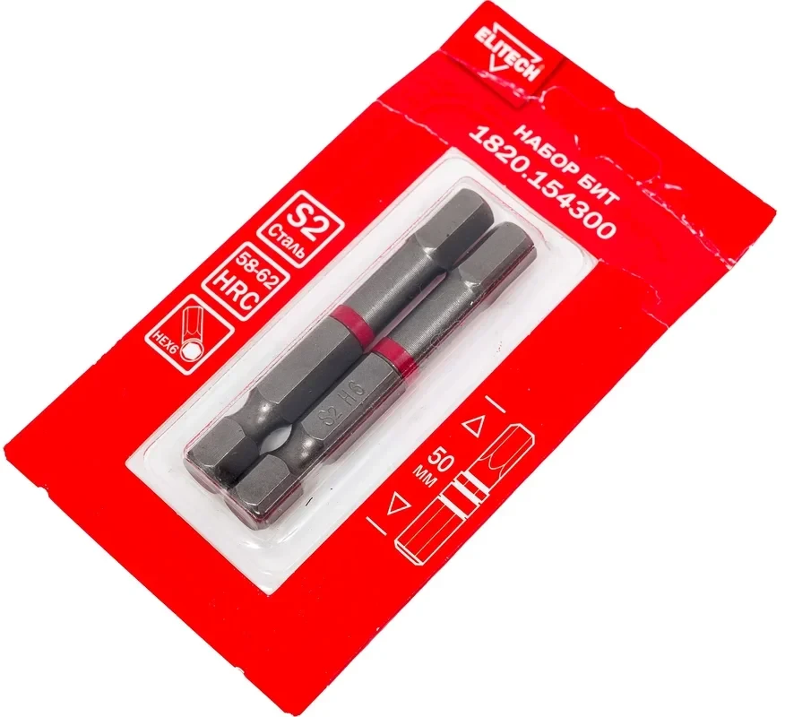 - Биты HEX6, 50мм., Elitech 1820.154300 - 2 шт.;
