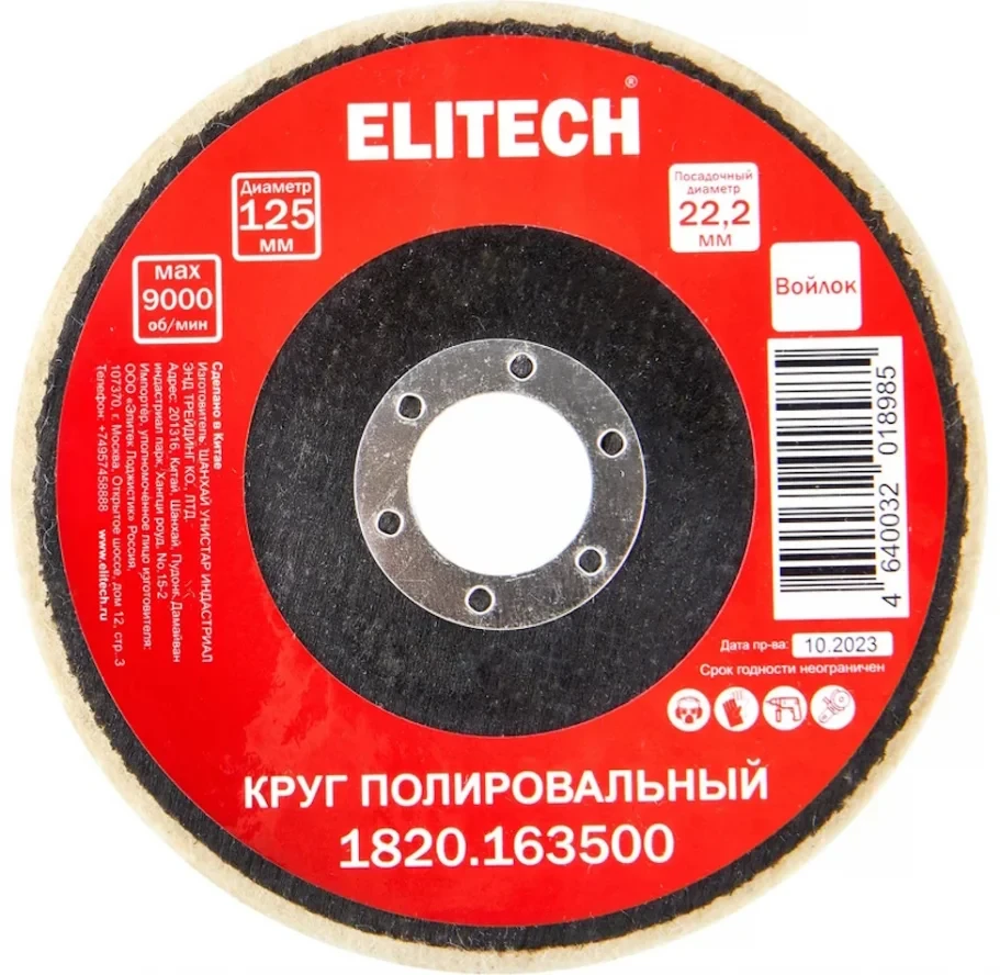 - Круг полировальный 125х22.2мм., войлок, Elitech 1820.163500;