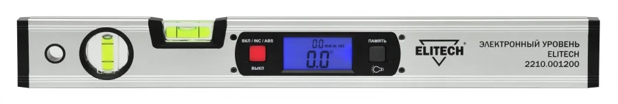 Электронный уровень ELITECH 2210.001200 предназначен для измерения углов и уклонов, проверки и контроля горизонтальных и наклонных поверхностей. Рабочими являются две поверхности прибора – верхняя и нижняя плоскости.