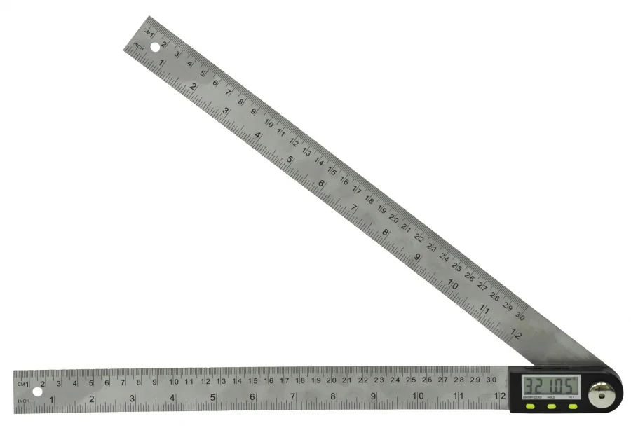 Состоит из двух металлических линеек, соединенных на одной оси и цифрового дисплея.