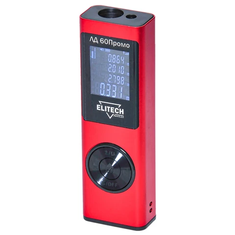 Лазерный дальномер ELITECH ЛД 60Промо предназначен для быстрого измерения расстояний на дальности до 60 метров. Он точнее обычной рулетки при измерении расстояния более 8 метров.