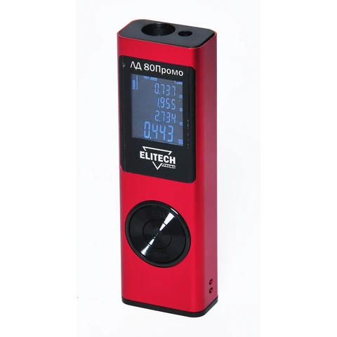 Лазерный дальномер ELITECH ЛД 80Промо предназначен для быстрого измерения расстояний на дальности до 80 метров. Он точнее обычной рулетки при измерении расстояния более 8 метров.