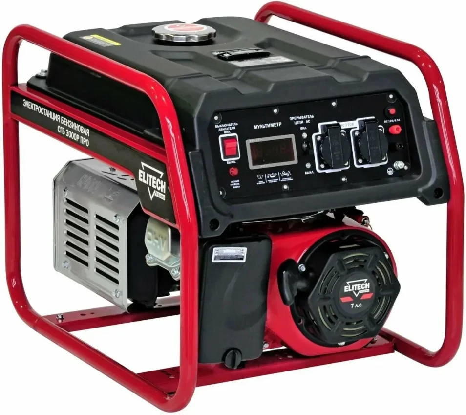- Генератор бензиновый Elitech СГБ 3000Р ПРО с четырехтактным бензиновым двигателем - это отличное решение при выборе автономного источника энергии для выезда на пикник, дачный участок или в любое другое место, находящееся в удаленности от электросети.