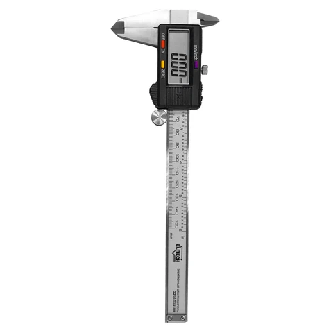 Штангенциркуль цифровой с дисплеем. Металлические губки. Выбор единицы измерения (дюймы или миллиметры). Измеряет внутренние и наружные диаметры, глубину отверстий. Питание от одного элемента питания LR44.