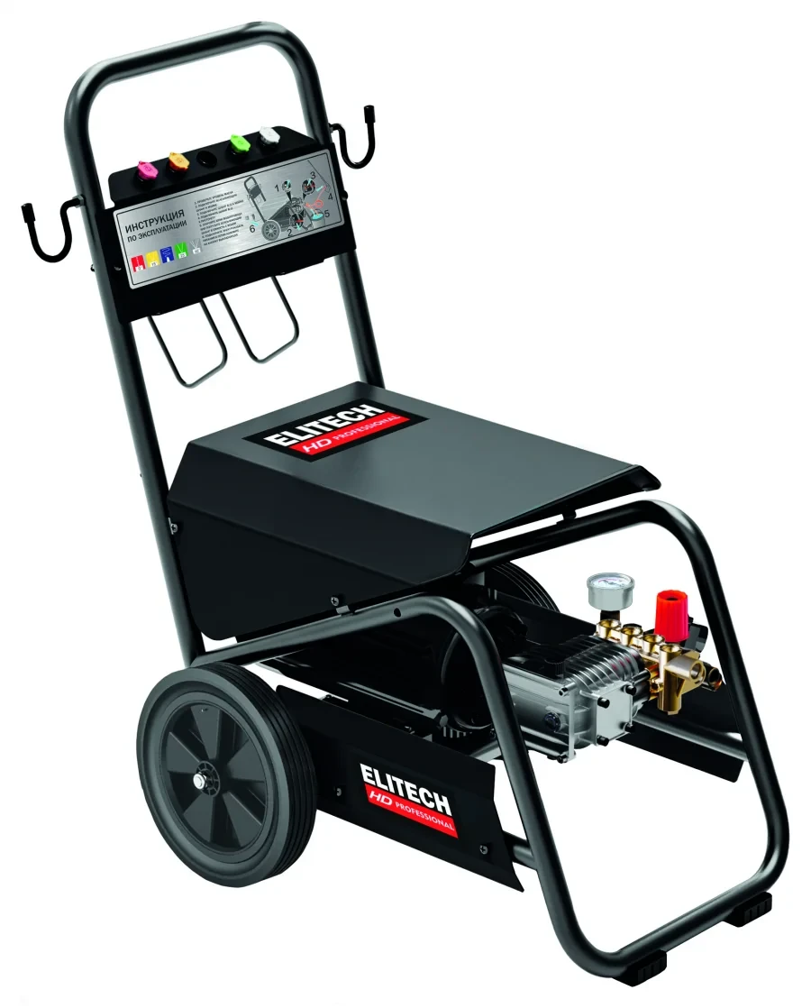 Мойка Elitech является самовсасывающей и может забирать воду, как из водопровода, так и из емкости с водой.