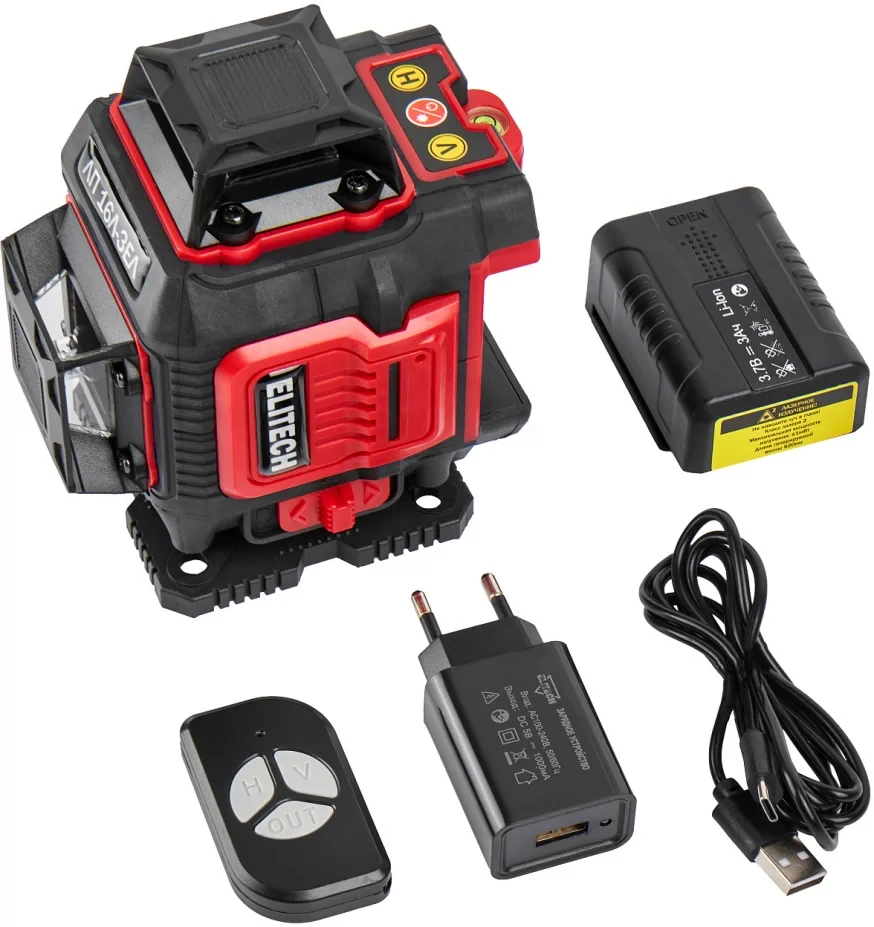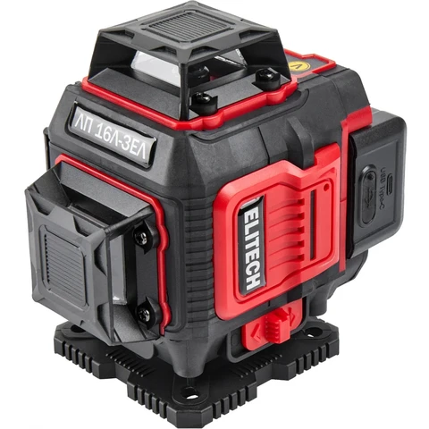 - Лазерный нивелир Elitech ЛП 16Л-ЗЕЛ с дальностью до 25 м и углом развертки в 360° градусов, проецирует 16 зеленых лучей, образуя 4 плоскости (2 горизонтальная и 2 вертикальных).