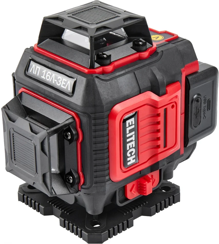- Модель ELITECH ЛП 16Л-ЗЕЛ проецирует 16 лучей, образуя 4 плоскости (2 горизонтальная и 2 вертикальных). Пересечения линий образуют 10 точек - под прибором (надир), над прибором (зенит) и 8 точек в плоскости прибора с углом 90° между собой.