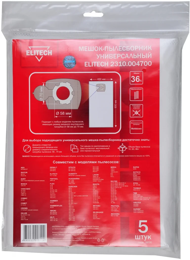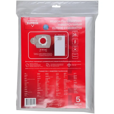 - Пылесборник Elitech 2310.004700 - 5 шт.;