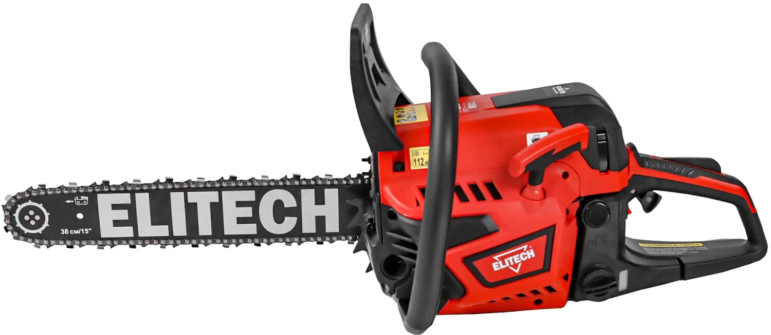 - Бензиновая цепная пила Elitech ПБ 5226С мощностью 2,6 л.с. и с шиной длиной 38 см., предназначена для валки деревьев, обрезки веток и сучьев, раскряжевки и заготовки дров.