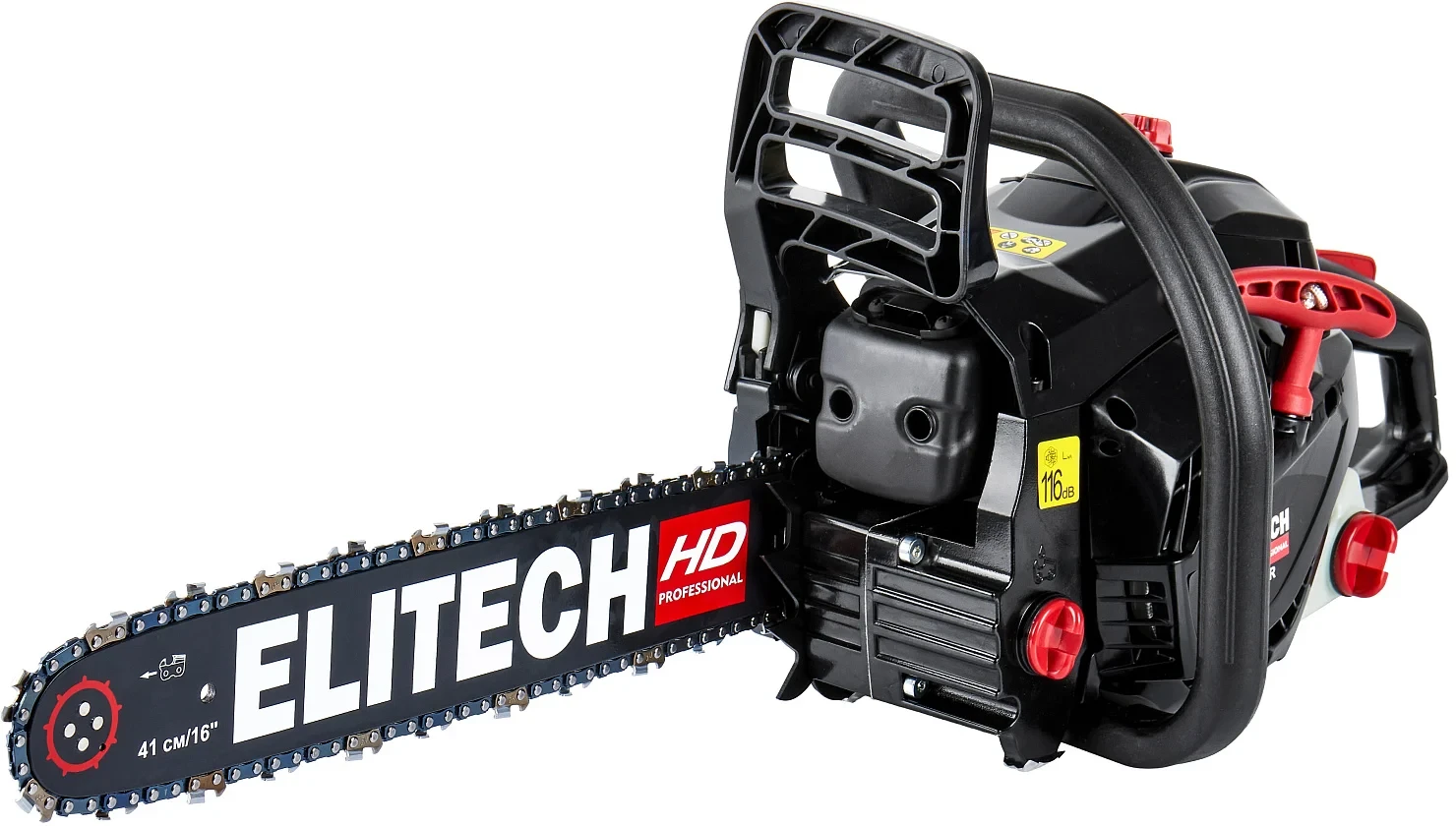 - Цепная пила бензиновая ELITECH HD CS 4125R с двигателем мощностью 2,5 л.с. предназначена для пиления древесины вне помещений, на открытом воздухе.