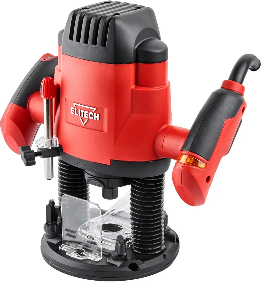 - Фрезер Elitech Ф 1300Э (E2212.004.00) артикул 207357 с электродвигателем мощностью 1300 Вт и электронной регулировкой скорости вращения в диапазоне 11000-28000 об/мин, предназначен для шпунтования, зенкования, вырезания пазов и бороздок, а также для обработки кромок и профилирования древесины.