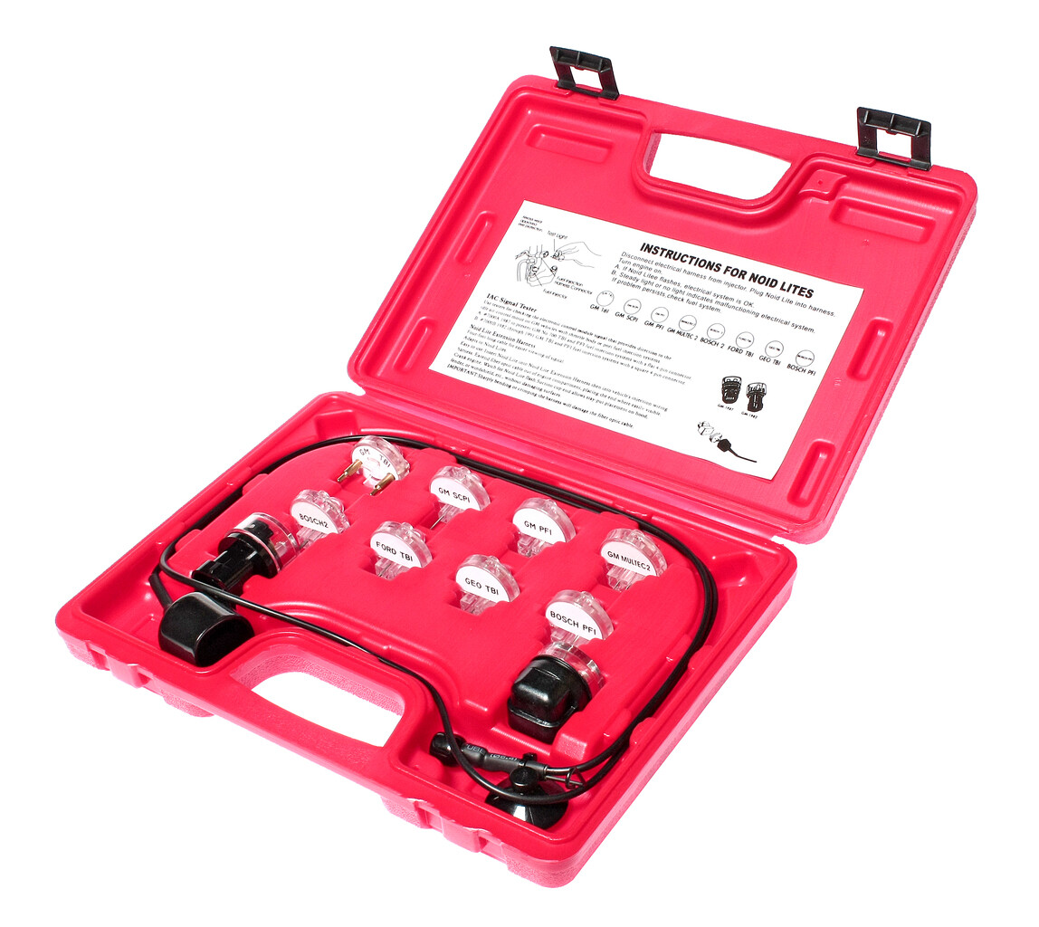 В набор входит 7 адаптеров для проверки GM PFI, Форд (Ford) TBI, GEO TBI, BOSCH PFI, GM TBI, GM SCPI, GM MULTEC2, BOSCH 2. 2 адаптера IAC для GM 1982 г.в. и позже, GM TBI и PFI, GM 1981 г.в. или позже GM 700 TBI и PFI, а также 1 оптоволоконный удлинитель.