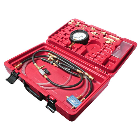 Комплект для проверки топливных систем позволяет диагностировать инжекторные системы на транспортных средствах большинства производителей и моделей.