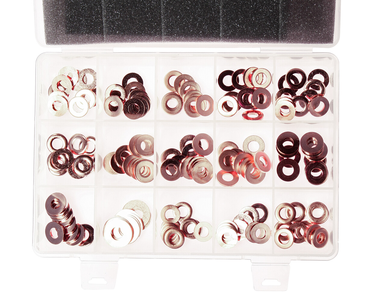 • Описание Универсальные медные шайбы 15-ти различных диаметров подходят для любых форсунок инжекторной системы. Размеры: 13.85x7.3x1.4 - 10 шт.; 14.6x7.5x1.3 - 10 шт.; 14.6x7.5x3 - 10 шт.; 15x7x2 - 10 шт.; 15x7.5x1 - 10 шт.; 15x7.5x1.5 - 10 шт.; 15x7.5x2 - 10 шт.; 15x7.5x2.5 - 10 шт.; 15x7.5x3 - 10 шт.; 15.5x7.5x2 - 10 шт.; 16x7.5x1.5 - 10 шт.; 16x7.5x1.7 - 10 шт.; 16x7.5x2 - 10 шт.; 16.4x7.4x2 - 10 шт.; 20x9.4x09 - 10 шт. Всего 150 ед., по 10 ед. каждого размера. Упаковка: прочный переносной кейс. Габаритные размеры: 210/155/45 мм. (Д/Ш/В) Вес: 595 гр.
