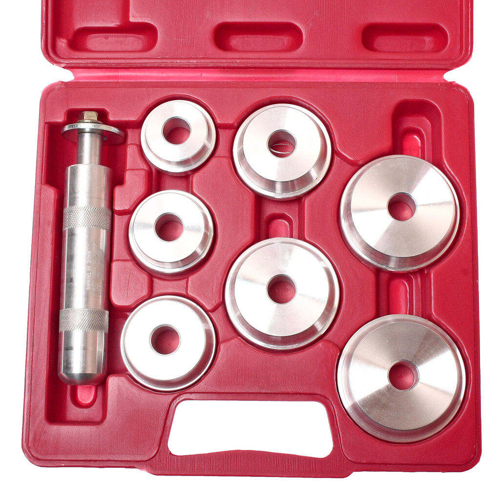 В комплект входят 9 дисков различного размера, что обеспечивает оптимальную работу с большинством стандартных подшипников.