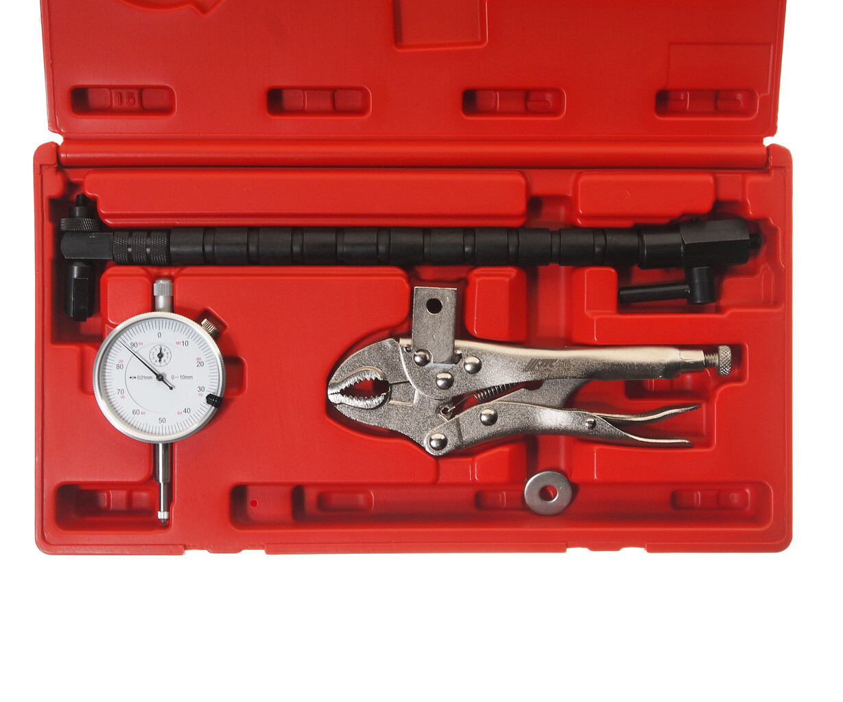 • Проверка величины биения тормозного диска проходит быстро и легко. В комплекте измерительный прибор с круговой шкалой.