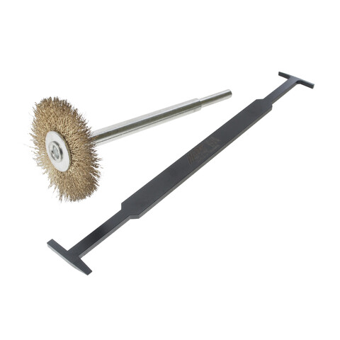 • Т-образная рукоять с режущими головками применяется для очистки тормозных цилиндров всех видов. Размеры рукояти 120х6 мм, диаметр щетки - 50 мм. Применяется для очистки загрязненной поверхности тормозных цилиндров.