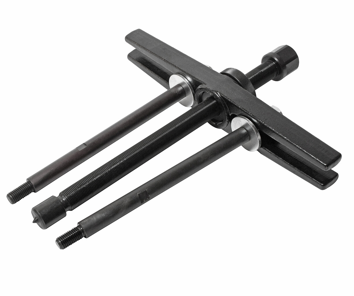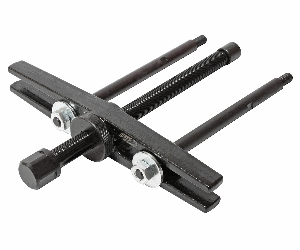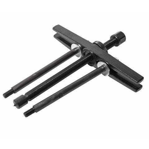 Демонтирует подшипник с помощью Н-образной балки и болтов.