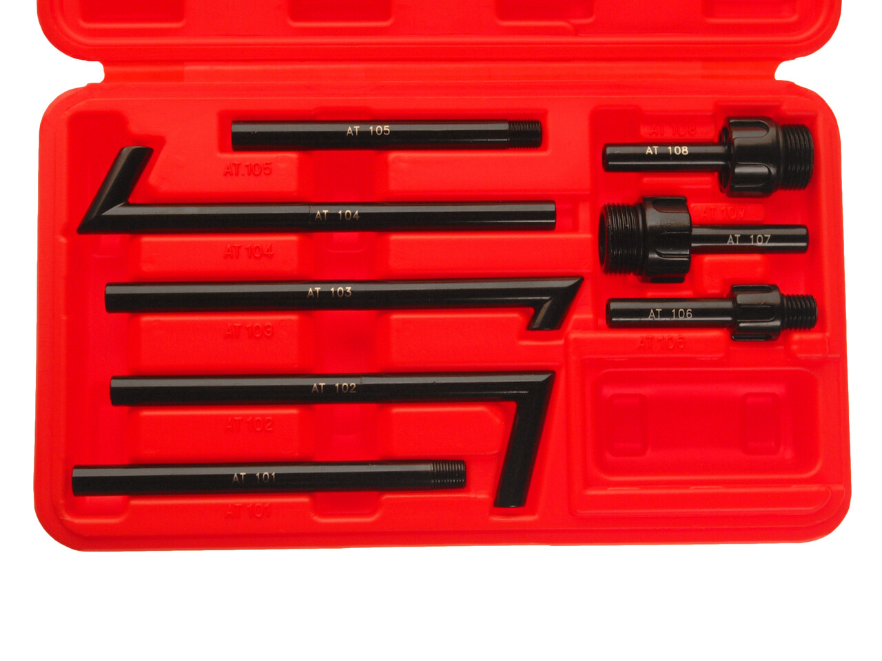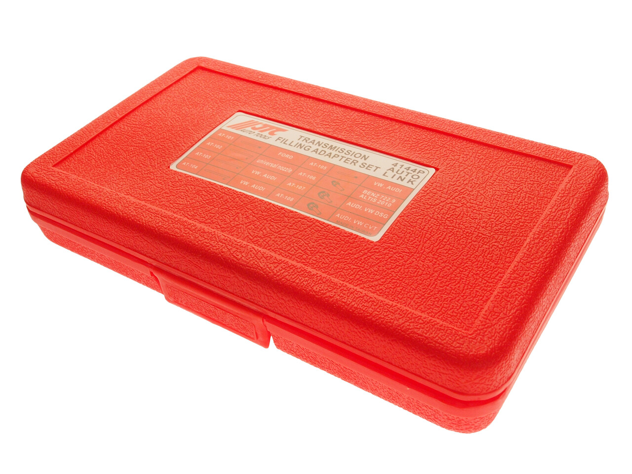 • Набор фитингов (8 шт.) для набора JTC-4144A. В комплекте: АТ-101 Ford. АТ-102 универсальный наконечник. АТ-103 Volkswagen, Audi. АТ-104 Volkswagen, Audi. АТ-105 Volkswagen, Audi. АТ-106 Mercedes-Benz 722.9, Altis 2010. АТ-107 Volkswagen DSG, Audi. АТ-108 Volkswagen CVT, Audi.