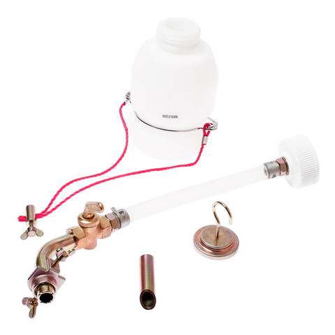 Емкость с тормозной жидкостью подвешивается с помощью магнитного держателя с крюком.