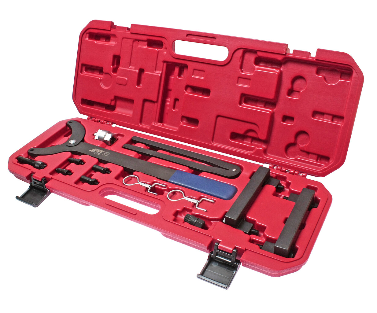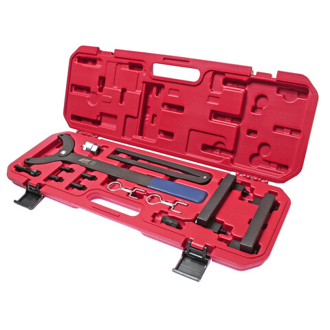 • Описание Специальный набор инструментов применяется для фиксации распределительного вала и установки фаз ГРМ. В комплекте: Фиксатор коленвала - 1 шт. Фиксатор распредвала - 2 шт. Фиксатор натяжителя цепи - 1 шт. Инструмент для проворачивания коленвала - 1 шт. Фиксатор зубчатых колес - 1 шт. Фиксатор вискомуфты - 1 шт. Применение: VAG A4/А6/А8 3,2 FSI с двигателем AUK. А6L/Quattro 2,4 с двигателем BDW. Упаковка: прочный переносной кейс. Габаритные размеры: 565/205/50 мм. (Д/Ш/В) Вес: 3282 гр.