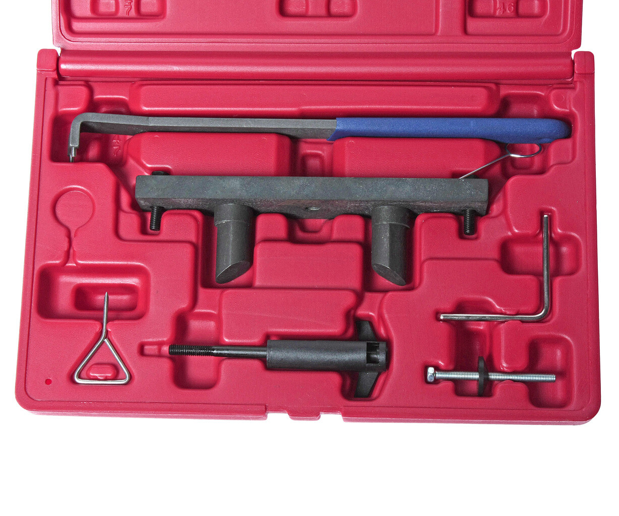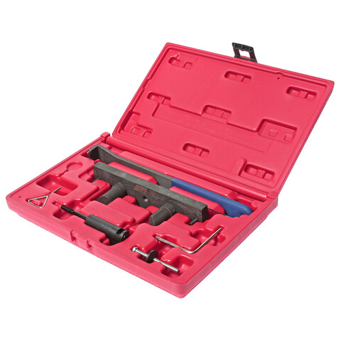 • Комплектация Фиксатор ролика натяжителя ремня. Оригинальный номер: T40011. Фиксатор ролика натяжителя ремня. Оригинальный номер: T10060, T10060A. Штифт для фиксации натяжителя ремня ГРМ. Оригинальный номер: T10115. Фиксатор натяжителя цепи ГРМ. Оригинальный номер: 3366. Приспособление для регулировки натяжного ролика ремня ГРМ. Оригинальный номер: T10020. Фиксатор распредвалов. Оригинальный номер: T10252. Приспособление для ослабления механизма натяжения ремня. Оригинальный номер: T10092. Описание Используется для бензиновых двигателей 2.0 FSI начиная с 2003 г.в. Применение Audi А3 2.0 FSI и FSI SOHC, модификации двигателей: AWA, BHD, BMB. Volkswagen Golf 2.0 FSI и FSI SOHC, Touran 2.0 FSI SOHC модификации двигателей: AWA, AXW.