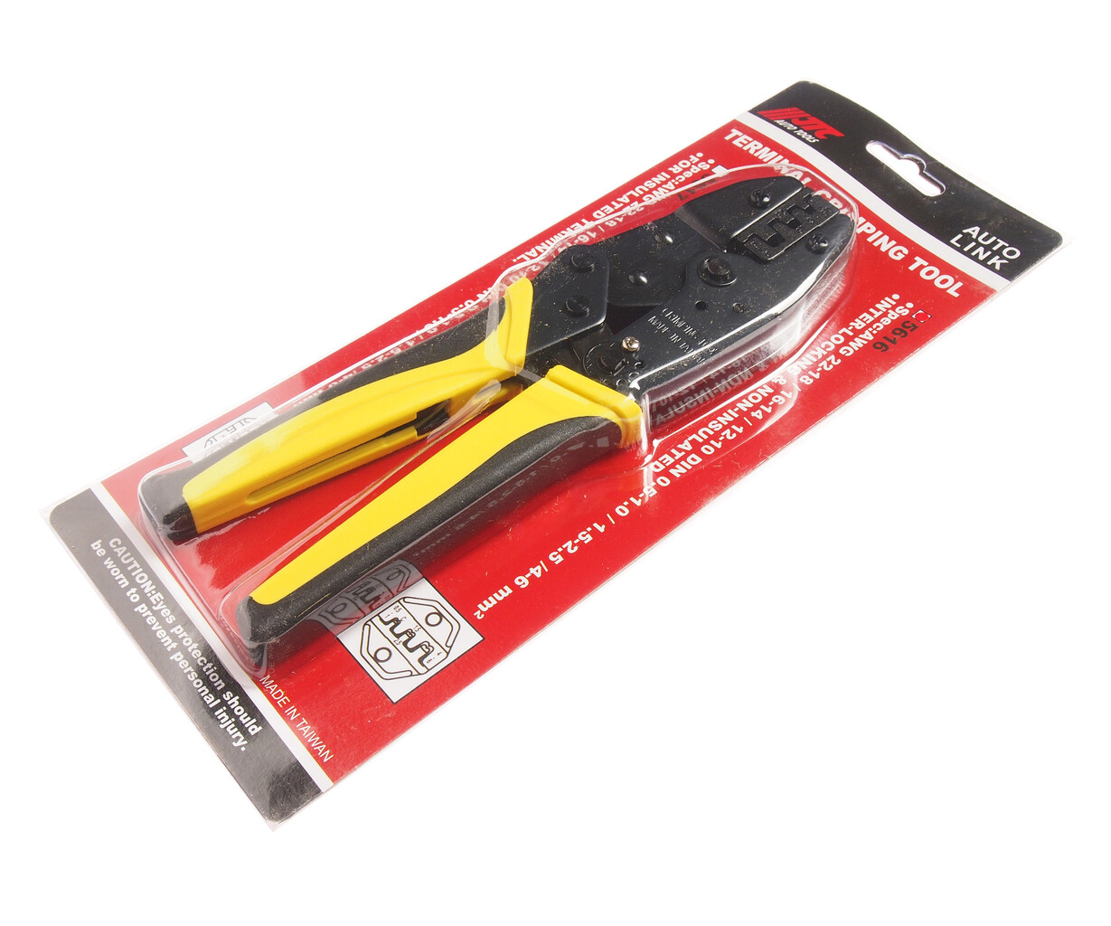 • Используются для обжима неизолированных и защёлкиваемых клемм. Размеры: AWG 22-18/16-14/12-10; DIN 0.5-1.0/1.5-2.5/4-6 мм². Количество в оптовой упаковке: 10 шт. и 30 шт. Габаритные размеры: 295/110/25 мм. (Д/Ш/В) Вес: 536 гр.