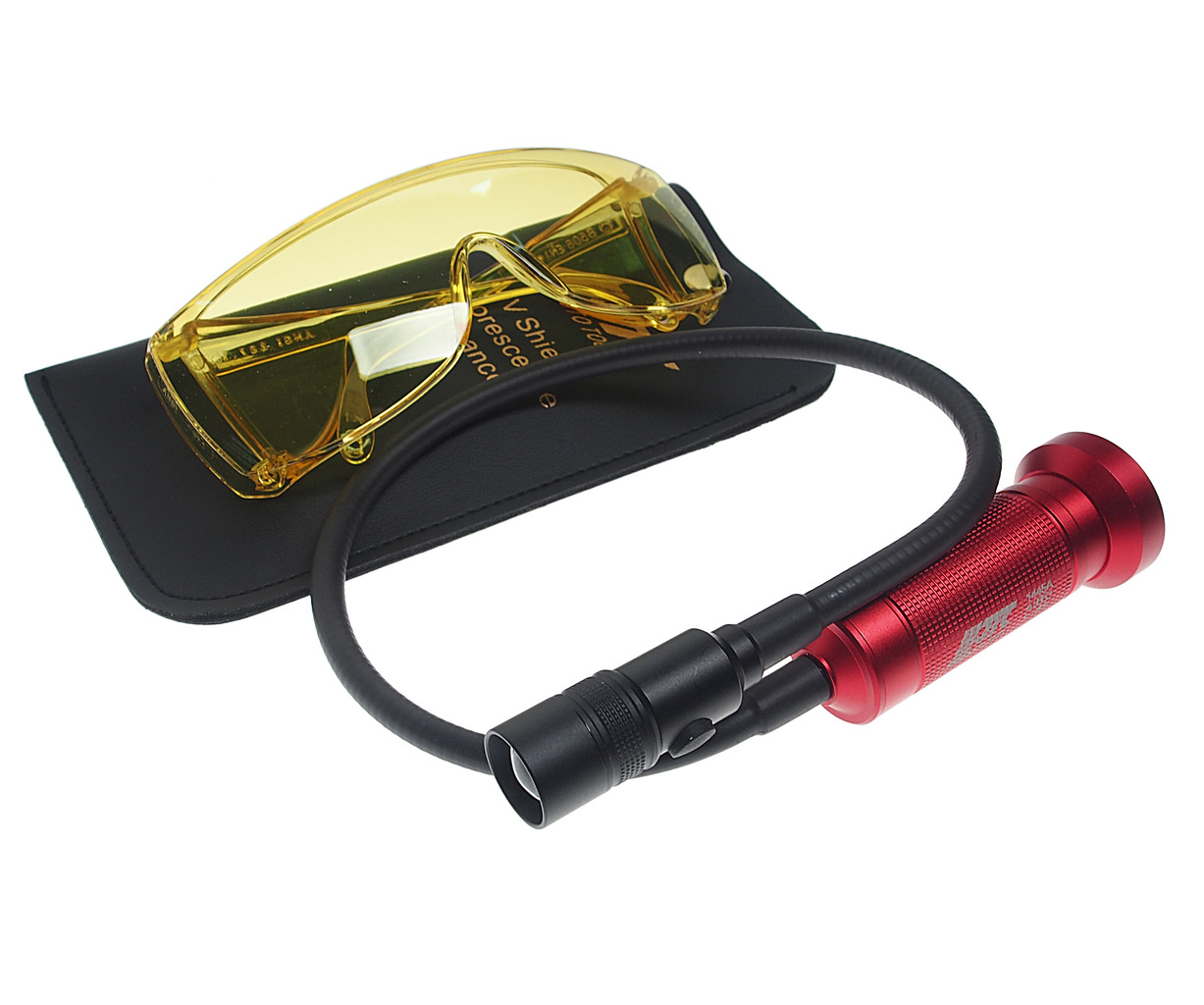 • Набор для поиска утечек хладогена JTC-1445A. В комплекте: Фонарь на гибкой ножке; Защитные очки; Футляр для хранения и переноски.