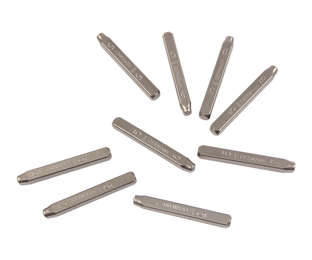 • СТАЛЬНОЙ ШТАМП Материал: CR-V #6150; Твердость: HRC 60±2°; 9 шт., включая 0-8 (DIN 1451); Посадочный квадрат: 5/16"; Длина: 66,3 мм; Ширина: 5 мм.
